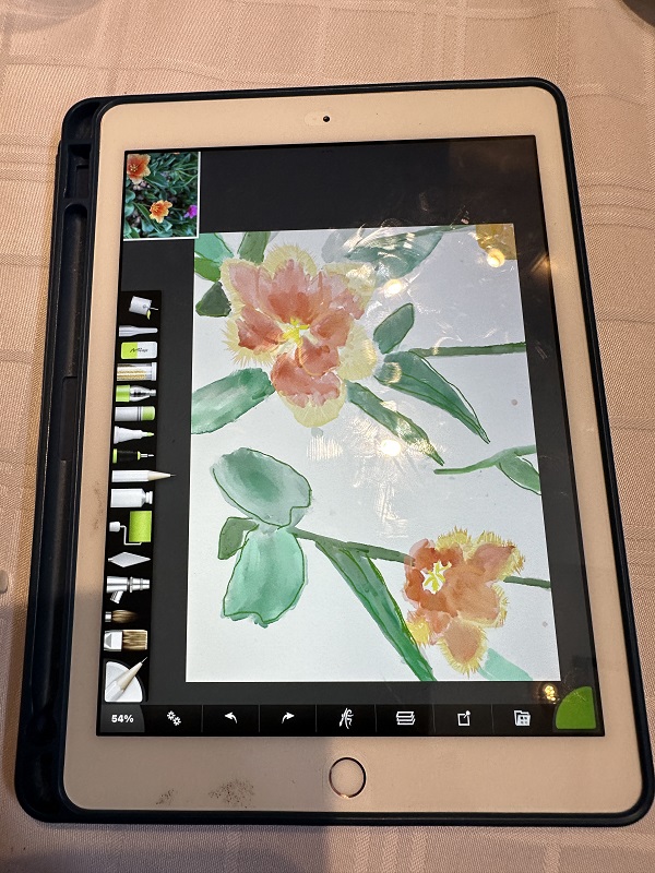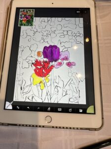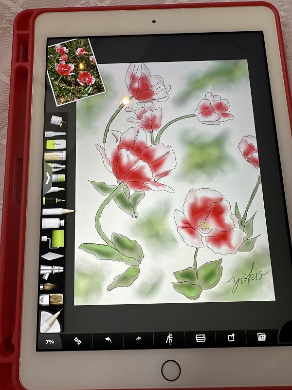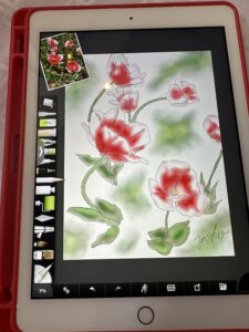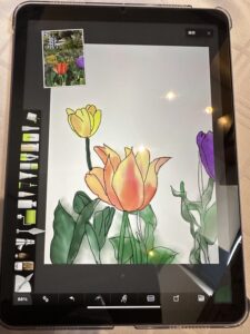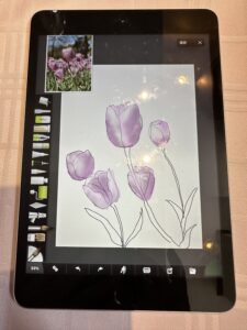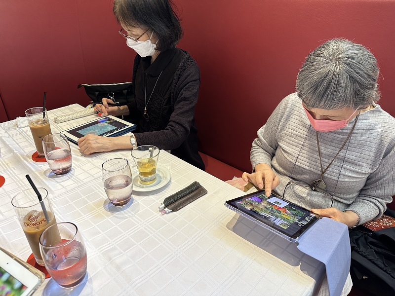 【iPadを持ってお外に飛び出しスケッチしてみませんか!ベンチでスケッチしてカフェで色付けを楽しみましょう。スケッチと言ってもまずは構図を決めてiPadで写真を撮ります。その写真をお道具の鉛筆でなぞっていきます。それをトレースと言いこれで下絵を作ります。なので絵心のない方でも安心して描けるわけです。】