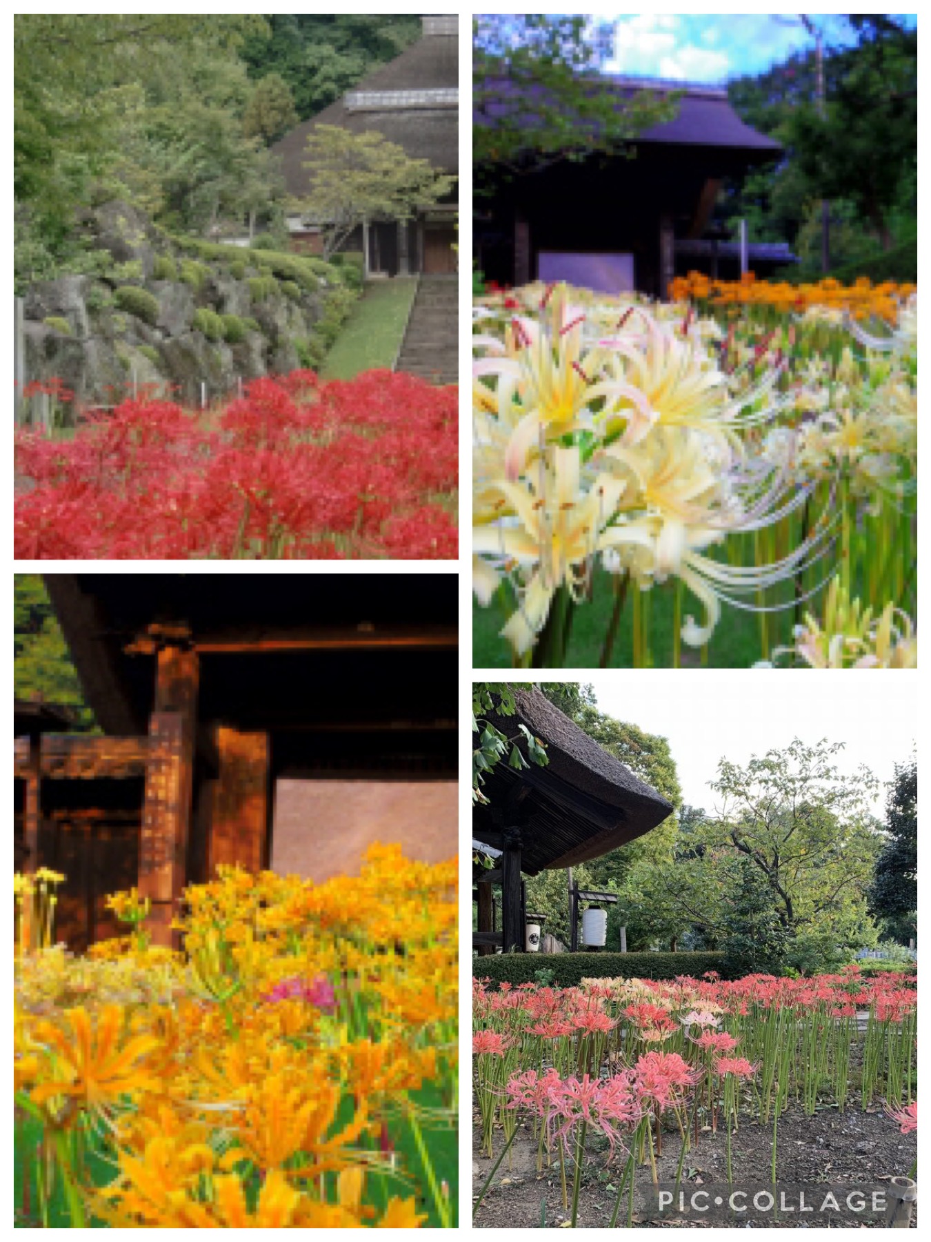 9月はお彼岸の月ですね。お彼岸と言えば彼岸花!そうー曼殊沙華を描きます。今回のお散歩は市営地下鉄新羽駅から徒歩5分の「西方寺」の曼殊沙華です。ここ西方寺の曼殊沙華は赤・白・黄色・ピンクと四色もそろっていて珍しいですね!!