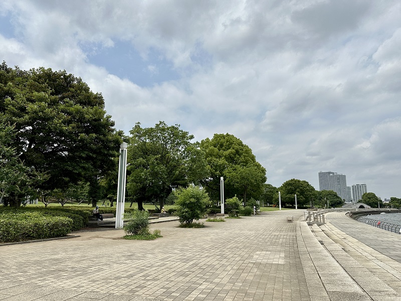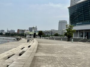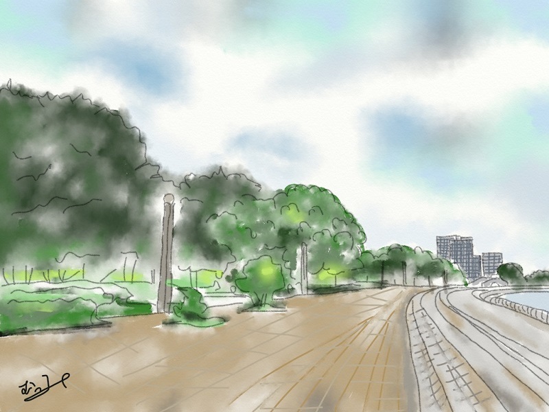 7月スケッチピクニックはみなとみらい臨海パークをお散歩します。ここは私のお気に入りのお散歩コースで広々とした公園は週末ともなるとピクニック気分の家族ずれで賑わっています。目の前は海で遠くに横浜ベイブリッジがみえます。ビルの中に囲まれたちょっとしたオアシスです。先日下見にお散歩してきました。