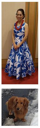 色々な趣味を持っていますが、広く浅く活動しています。外に出る事が好きでスポーツが好きなことから、近所のサークルに入ってバドミントンをやっています。子供が3人いるおかげで、友達関係も3人分となり、かかわる人や友達が増えました。フラダンスも習っていて楽しんでいます。夏の作品展では、フラダンスのイラストを入れたうちわを作りました。その他、フラワーアレンジメントに1ヶ月に1回通っています。かわいい愛犬も飼っています。