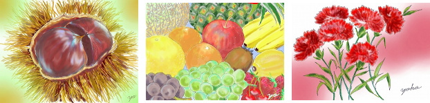 担当は、奇しくも入会時の平坂先生で、どこか御縁を感じ、そのまま受講することとなり現在に至っています。その後、仕事も始めたりと、前向きに元気に過ごしていますが、あの日のように、一歩踏み出す勇気の大切さを感じている今日この頃です。パソコンで絵を描くってどういう事?難しそう?と思われるかもしれませんね。そんなことはありません。楽しいですよ。コツはコツコツ続けることです(笑)。継続は力なり。石の上にも?年です。私自身は絵を習ったことはありません(学校で習った事以外は…)。ただ、漫画を描くことは好きでしたね。教室では現在「トレース」という方法で絵を描いています。下絵(写真)を選んで、アニメのトレースのような技法で描いていきます。面白いのは、同じ下絵を使ってもそれぞれの個性が出るということです。優しい方は絵にも優しさが滲み出ますし、穏やかな方が意外に力強いタッチで描かれたりと、その方の本質が現れるのでしょうか。私はというと…さてどうでしょうか(笑)。パソコン水彩の良いところは、絵の具を使用しないので、汚れないし臭いも無い‼(笑) 後始末も、電源を落とすだけなので簡単‼(筆を洗ったりする面倒な手間がいらない)…と、時間の無い忙しい主婦にはぴったりな趣味ではないかと思っています。月2回の「お絵かきタイム」は、仕事や介護、その他で忙しい私にとって、とても貴重な時間になっています。ただ時として、悩み事相談に脱線してしまい何しに来たの~(笑)という日もあったりします。ま、そんな所もこちらの教室の良いところなのでは…と思っています(笑)。