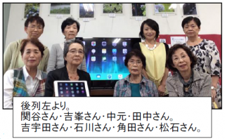 ★田中さん:五月に「出来るかな」と不安な気持ちで教室に行きました。ところが楽しいお仲間と素敵な中元先生の講座は分かりやすく、出席するのが楽しみになりました。カンでさわっていたのが筋道の通った操作が出来るようになりました。今では、ニュース、気象情報、旅行先の情報収集、ネットスーパー、写真、ゲーム、メールと毎日の生活にiPadは欠かせません。これからもクラスのお仲間ともうひと頑張りしたいと思います。