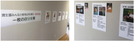 現在私は、特別養護老人ホームに勤務しています。この2年間、高齢者の写真展を開催して来ました。2018年は一枚の自分史展を開催でき大変好評でした。今の写真と思い出の写真にコメントを入れてA3の印画紙に出力し、パネルに仕上げました。素晴らしい写真展となりました。この企画は介護する職員からも昔の入居者をすることが出来たと好評でした。戸塚教室の自分史の冊子が参考となりました。