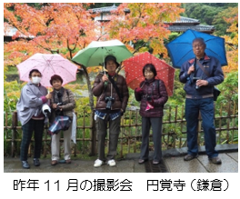 畠中奈穂美先生:弥生台教室のカメラ講座を担当させて頂いて6年目に入ります。当初から5人程のメンバーで、鎌倉を中心に写真の勉強が始まりました。コンデジの方も一眼レフやミラーレスのカメラに買い替えられ、写真に対する気持ちは熱心で、作品もどんどん上手になられています。四季を感じる被写体を探して、少し遠出の撮影に出かける事もあります。生徒さん皆、仲良しで和気あいあいと、いつも楽しい撮影会です。写真を指導しながら、私自身も楽しく過ごせている事に感謝しています。コロナ騒ぎ前の撮影会は、西方寺の彼岸花、鎌倉の一条恵観山荘、円覚寺の紅葉、山下公園のイルミネーション、二宮の吾妻山の菜の花などでした。コロナの心配をせずに撮影会ができる事を願います。