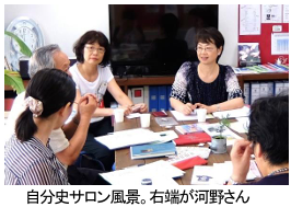 これからも自分史を語ったり書いたりできる自分史サロンを運営することで、ひとりでも多くの方が、自分らしい自分史と出会えるようにしていきたいと思っています。自分史サロンは毎月土曜日、10時~12時開催。毎月参加でもいいし、飛び飛びでの参加でもけっこうです。参加費は1回2,000円。継続して参加していただきたいので3回分まとめて6,000円いただいています。ゆっくりお話を伺いたいので予約をお願いしています。開催日程や予約状況は河野にお尋ねください。皆様の参加をお待ちしています。