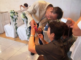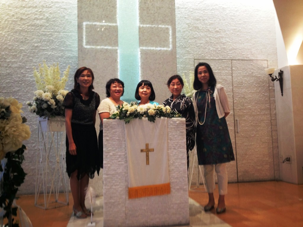 順番にチャペルの中央で十字架をバックにカメラに収まる皆さんの笑顔がとても素敵でした。