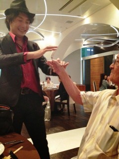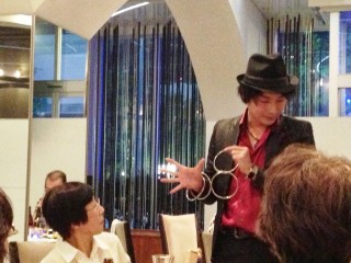 お食事も進んだ頃、本日のゲスト「マジシャンRYO」の登場です。