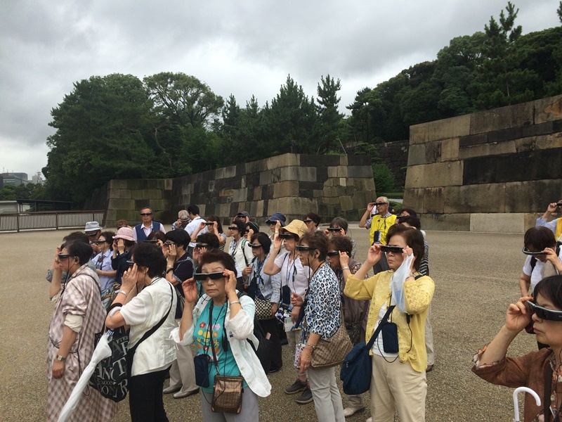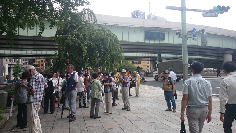 眼鏡型ウェアラブル端末を使えば、今はない江戸城の天守閣と、昔の日本橋をバーチャル体験できるツアーでした。