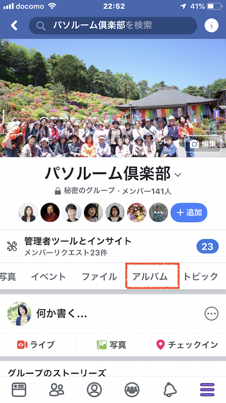 ●「アルバム」が見つかったらタップします。