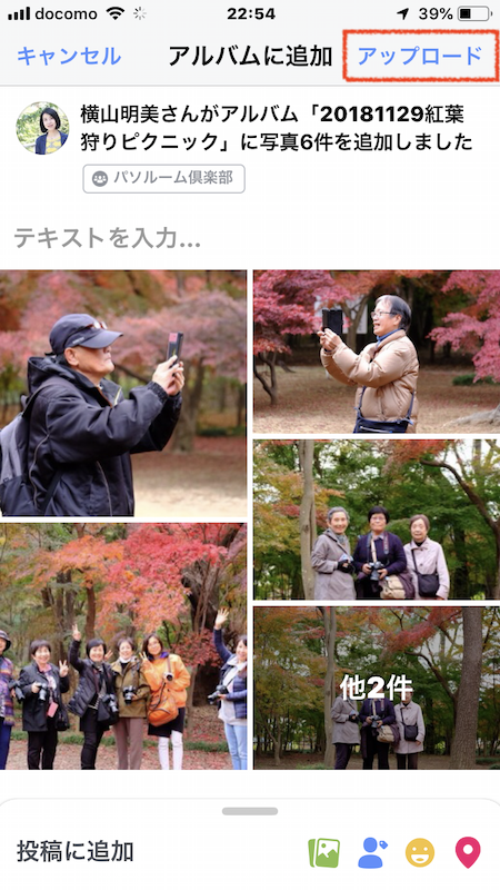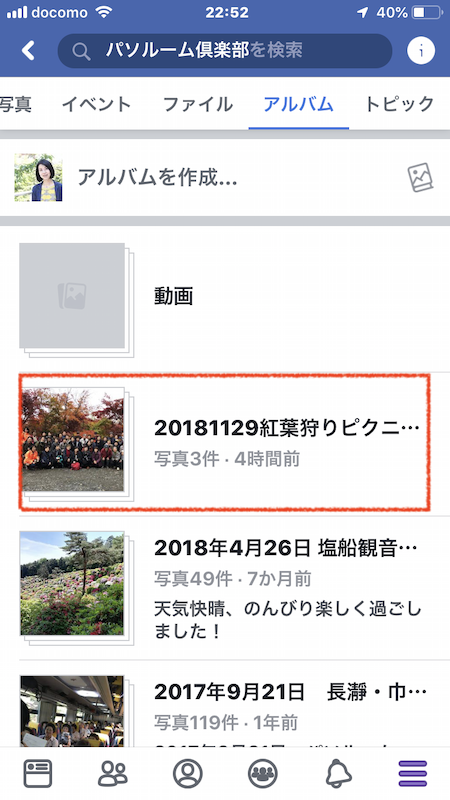 ●アルバム一覧から「20181129紅葉狩りピクニック」をタップします。