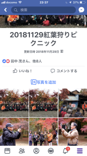 写真の共有をしたいと思いますので、皆様の写真も、FBのブループ「パソルーム倶楽部」内に作成しました「20181129紅葉狩りピクニック」にアップロードをお願いいたします!