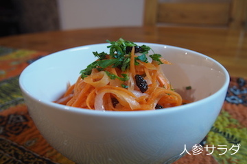 1.人参は千切りにして塩でもんでしばらく置き、出てきた水分を切っておく。