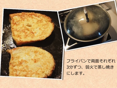 3.卵液に食パンを浸す(片面2分30秒)。