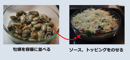 水 1/2カップ(牡蠣を茹でる時に使用)
