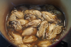 - 4〜5分煮たら火を止める。そのままの状態で粗熱をとり、その後牡蠣と煮汁に分ける。
