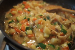 - 5の状態でとろみがつくまで5分ほど様子を見ながら煮て、塩胡椒で味を整える。