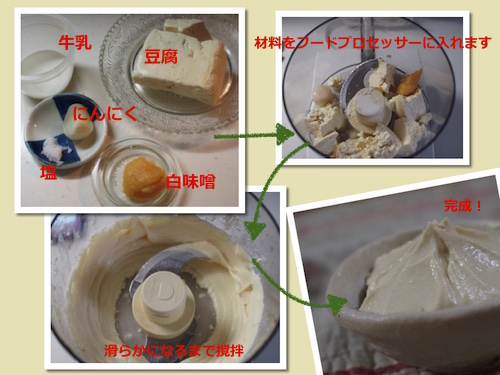 その時の材料のうち、生クリームを豆腐クリームに置き換えています。