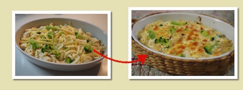(豆腐クリームに味が付いているので、塩を入れすぎいないようにしてください) - 3.を耐熱用の器に入れて、ブロッコリー・シュレッドチーズをのせる。