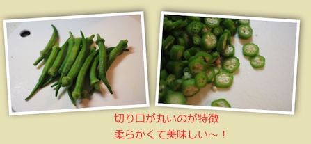 普通のオクラと比べると、切り口が丸くて、柔らかいのが特徴です。