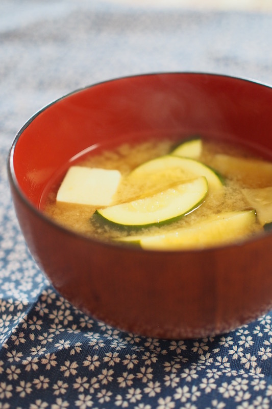 お好みの大きさにカットしたズッキーニを具材にして味噌汁を作ります。