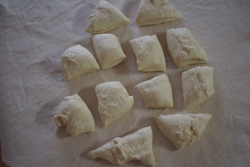 - まな板などに生地を出して、包丁などを使って12個に分割します。
