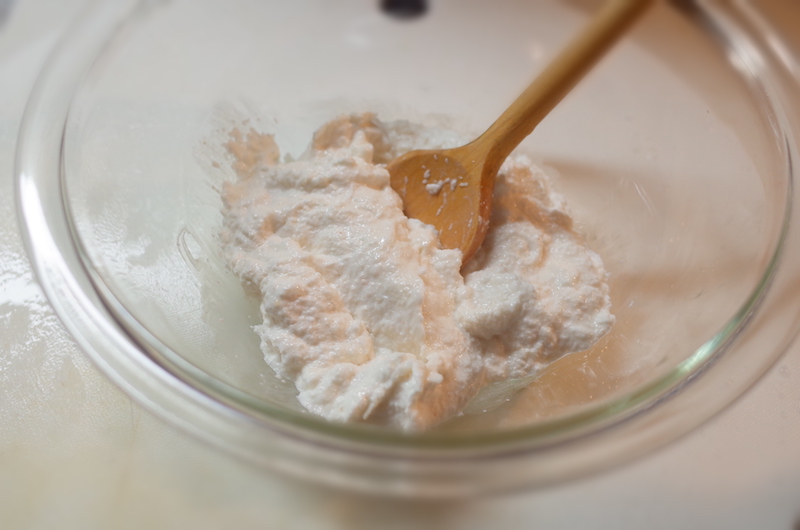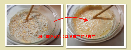 - さらに、小麦粉を加えて、粉っぽさがなくなるまで混ぜる。