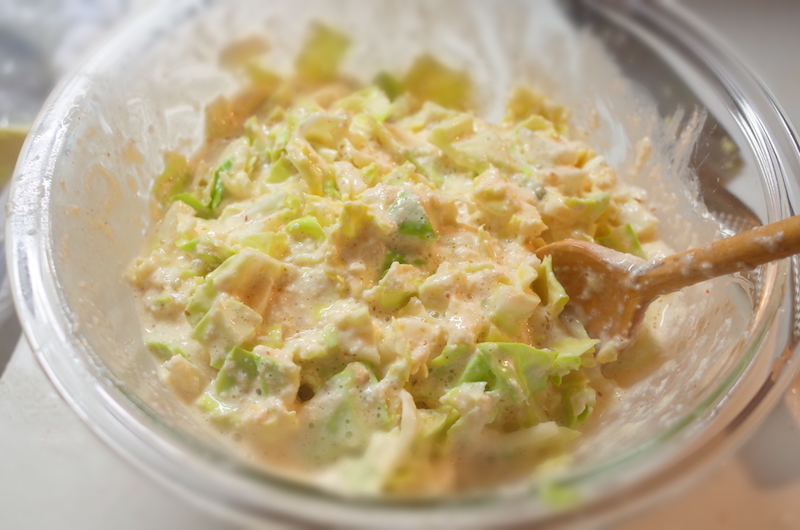 - キャベツを加えて、さっくりと混ぜ合わせる。