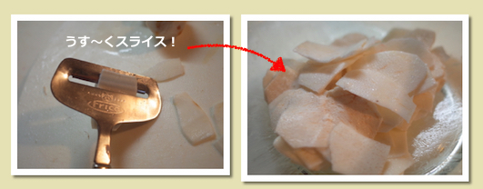 ※里芋をスライする時は、手を切らないように気をつけてください。