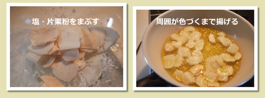 - 塩少々をまぶして、さらに片栗粉を薄くまぶす。
