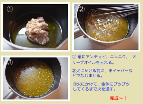 - 食べるときに味が薄いようでしたら、バーニャカウダを足してください。