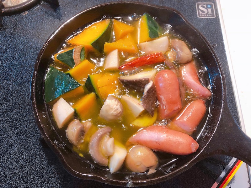 - カボチャ〜ウインナーまでの材料を一口大にカットする。