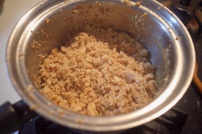 - 調味料と水を加えたら、全体をほぐしながら水分がほとんどなくなるまで煮詰める。