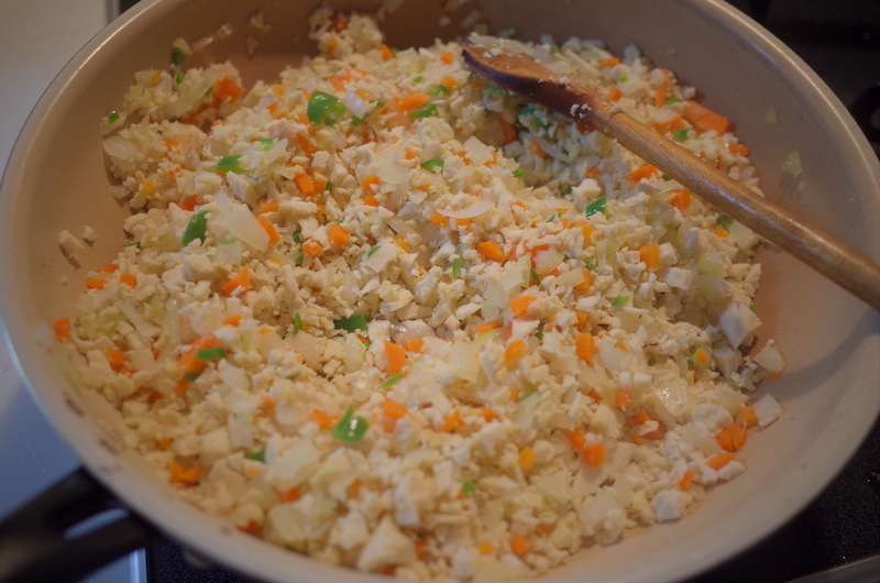 - ②に玉ねぎ、人参、セロリ、ピーマンを入れて炒める。しんなりしてきたら塩を加え、さらに高野豆腐を加えて炒め合わせる。
