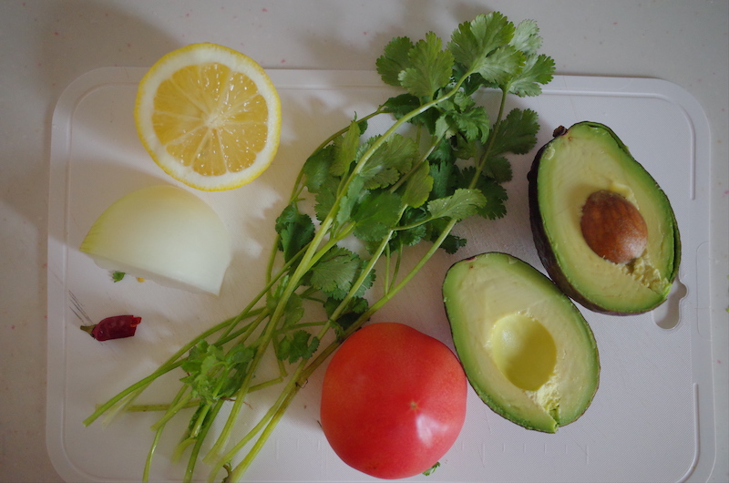 - アボガドは半分にカットしてから種を取り、皮をむいて果肉はボウルに入れる。レモン汁を振りかけて、フォークで潰す。