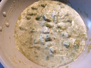 - 全体に火が通ったら牛乳とコンソメを加えて、とろみが出るまで煮る(5分くらい)。味を見て足りないようだったら塩を足す。