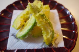 - 天ぷら粉をつけて、170度くらいの油でさっとあげる。