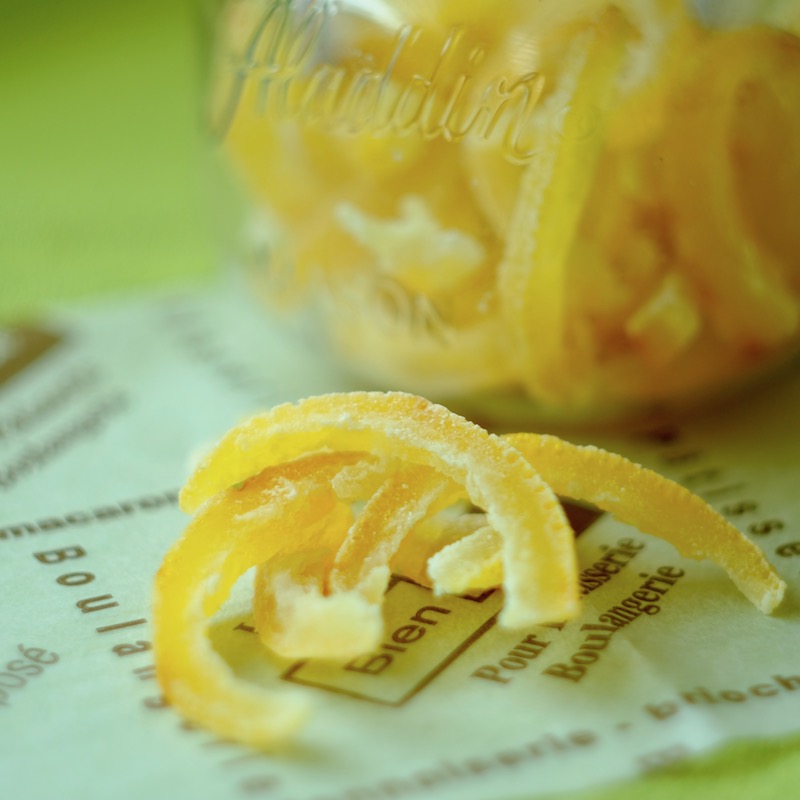 夏みかんや八朔などの果皮を、砂糖で煮詰めて乾燥させたものがオレンジピールです。