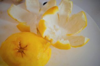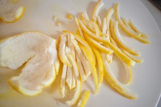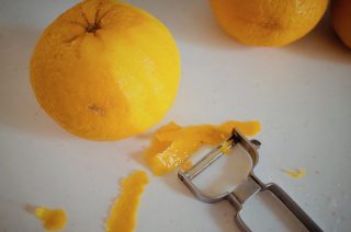 - 表面をよく洗った夏ミカンの外側の皮を薄くむく。