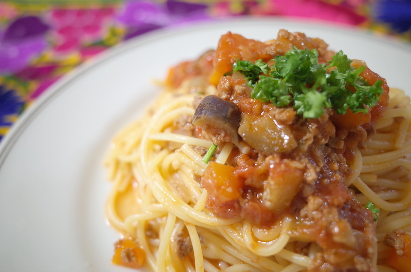 ●ナスとひき肉のパスタ(トマトソース)