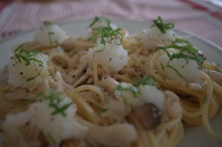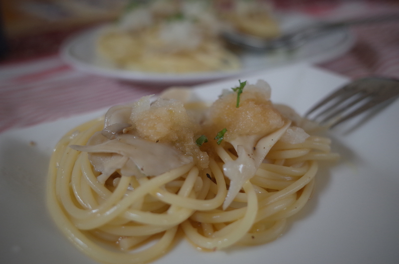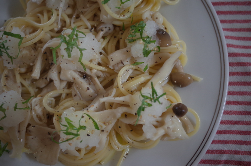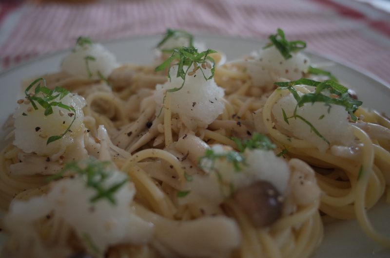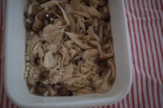 2. パスタが茹で上がったら湯切りをして、キノコのマリネと和える。