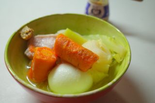*ありあわせの材料を大きめにカットして、コンソメ と一緒にお鍋に入れてコトコと煮るだけ♪