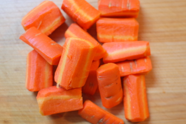 1. 人参は一口大の大きさにカットする。*少し面取りしました。