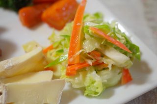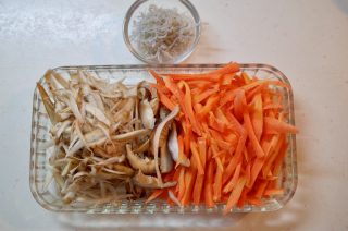 1. キャベツと大塚にんじんは千切りにしてボウルに入れる。