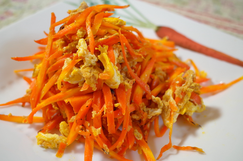 1. にんじんはよく洗って5センチ長さの千切りにする。