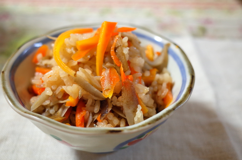 一般的な炊き込みご飯ですが、ニンジンの味が引き立っています!