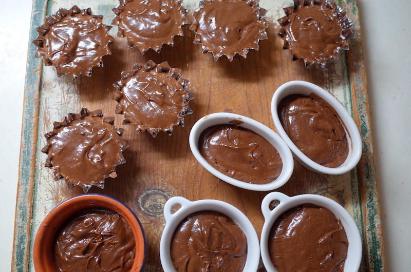 - 型・器に入れて(8分目くらいまで)、160度のオーブンで15~18分くらい焼成する。竹串をさせいて生の生地がついてこなければOK。