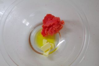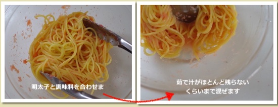 - 茹で上がったパスタをボウルに入れ、調味料と合わせます。さっと混ぜ合わせたら茹で汁30ccを2回に分けて入れ、ソースを伸ばしながら手早く混ぜていきます。