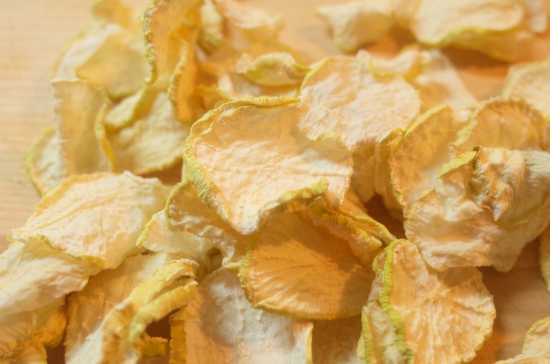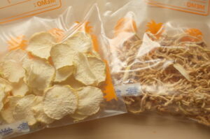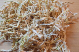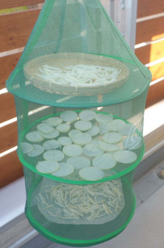 - ざる(ネット)に重ならない様に広げて、好みの硬さになるまで干す(1日に1度くらい裏表を返す)。