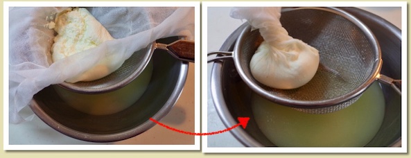 - カーぜを茶巾の様にして、好みの硬さになるまで水分を絞る。