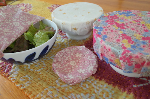 ミツロウラップは、布(コットン)にミツロウ・植物性オイルを染み込ませたラップです。